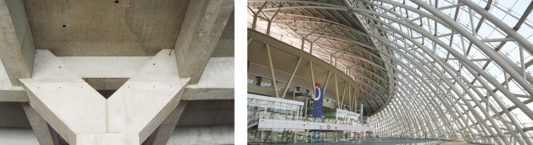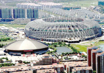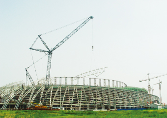 1、大型空間鋼結(jié)構施工:由主桁架、子桁架、落地桁架柱、環(huán)形桁架、支撐、檁條與鑄鋼節(jié)點構成一個穩(wěn)定的三維空間體系,其面積達76000m2。鋼屋蓋造型獨特、全部由曲線和曲面組成 ,各點標高不一,高空安裝定位難度大。