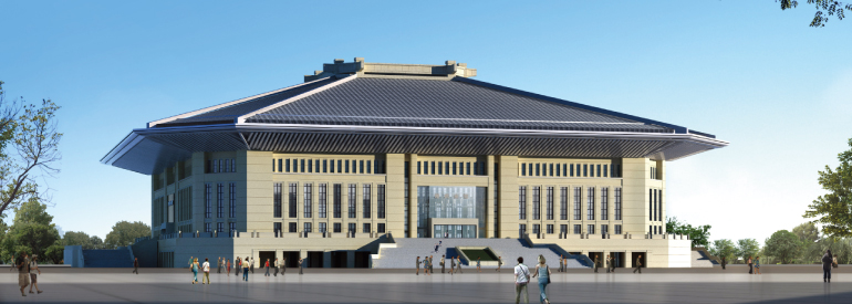 霍元甲武術(shù)館鋼結(jié)構(gòu)網(wǎng)架為八坡雙層折板型網(wǎng)架結(jié)構(gòu),該工程鋼結(jié)構(gòu)施工部位為焊接球形網(wǎng)架結(jié)構(gòu)屋頂,其平面投影為四軸對(duì)稱(chēng)圖形,共有八個(gè)坡,平面尺寸為116.4m×116.4m,最高處39.75m,懸挑10m,重量約1540噸,桁架支撐在60根混凝土柱上。