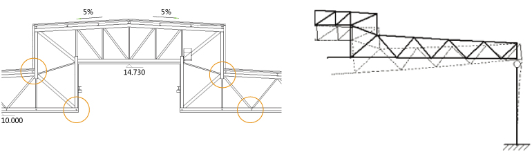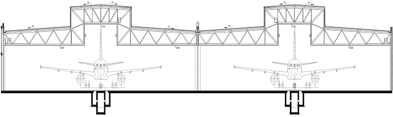 14號噴漆車間工程,建筑面積20900m2。噴漆機庫中的兩個噴漆大廳鋼屋架設(shè)計為下弦不連續(xù)、上弦折線形鋼屋架,屋架跨度:60m,重70t。