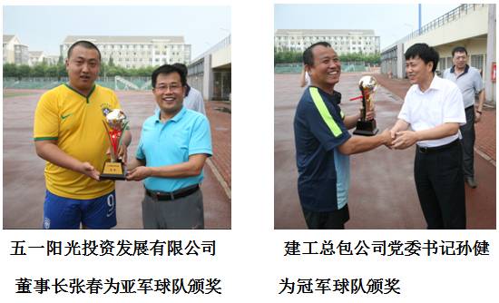 比賽競爭激烈,既體現(xiàn)出雙方隊員友誼第一,比賽第二的精神,又展現(xiàn)了各自企業(yè)風采和員工素質(zhì)。本次活動不僅鍛煉了員工體魄,豐富了職工業(yè)余生活,而且為甲方建設(shè)單位同施工單位搭建了相互交流的平臺。最終五一陽光投資發(fā)展有限公司足球隊獲得冠軍,二分公司足球隊獲得亞軍。