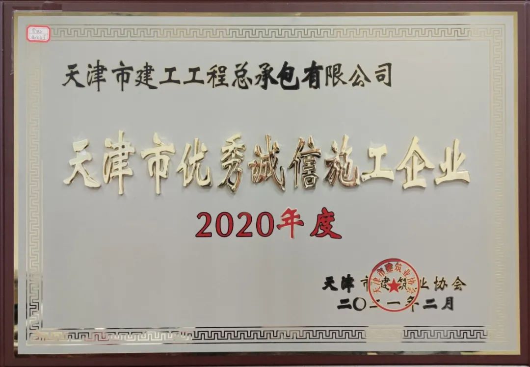 近日天津市建筑業(yè)協(xié)會(huì)發(fā)布了“2020年度天津市建設(shè)行業(yè)優(yōu)秀誠(chéng)信企業(yè)”名單。公司再次榮獲此項(xiàng)榮譽(yù)稱(chēng)號(hào)。