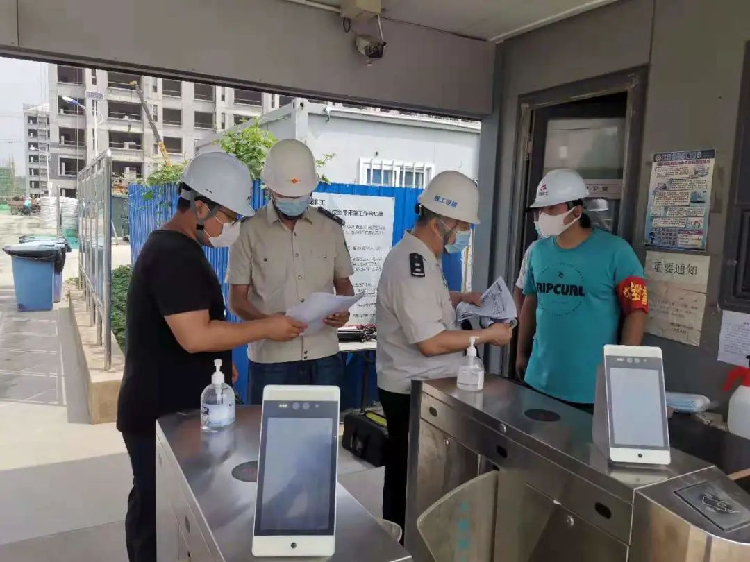 區(qū)住建委工作人員對(duì)進(jìn)出的管理人員及勞務(wù)人員逐一開(kāi)展體溫測(cè)量、健康碼疫苗接種記錄雙碼核查。同時(shí)結(jié)合項(xiàng)目施工現(xiàn)場(chǎng)設(shè)置的人臉識(shí)別智能管理系統(tǒng)對(duì)180多名工作人員進(jìn)行了詳細(xì)登記。