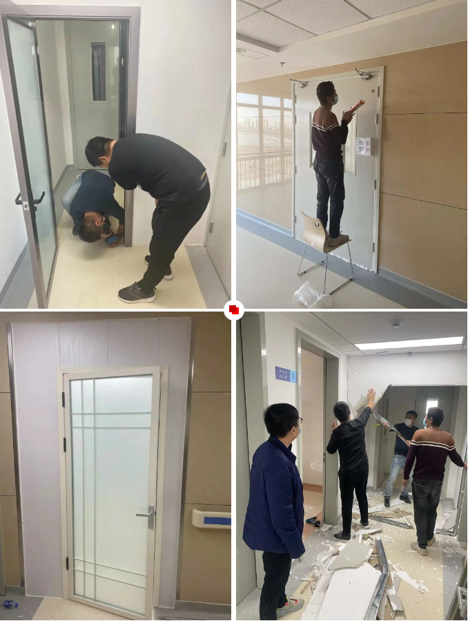 改建伊始,因全市封閉小區(qū)等待核酸結(jié)果,工人無法進場。項目部主動多方聯(lián)系,最終以醫(yī)院開具證明及通行證的方式,確保10名工人按時到場并開始晝夜施工,人手不夠,項目管理人員親自上陣,在短短的三天時間內(nèi),對首層大廳增加輕鋼龍骨PVC隔斷,區(qū)分感染通道與潔凈區(qū);各層病房變更緩沖區(qū)隔斷位置,一脫區(qū)及二脫區(qū)增加攝像頭及喇叭,共計22處。在項目班子的精心組織下,在保證施工質(zhì)量及安全的情況下,總體工程量近300㎡的改造任務(wù)最終提前一天完成。