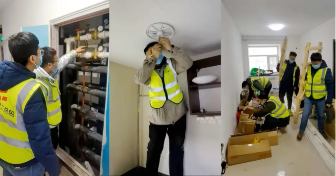 與此同時(shí),總承包一分公司和二分公司搶建隊(duì)員們正在對(duì)于各房間墻面進(jìn)行二次粉刷和深度衛(wèi)生保潔,提升隔離用房改造的質(zhì)量和細(xì)節(jié)水平,提高入住者的舒適度。為了迎接可能出現(xiàn)的臨時(shí)任務(wù),項(xiàng)目部安排了班次,確保晝夜值守,他們表示:搶建任務(wù)不最終結(jié)束,絕不收兵。