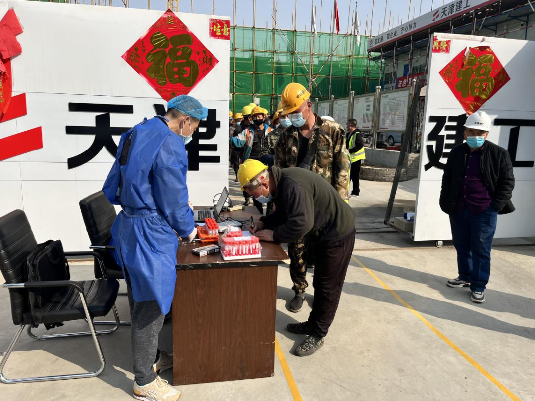 總承包公司團(tuán)泊墅項(xiàng)目距離事發(fā)工地僅15公里,且項(xiàng)目正值用工高峰,勞動(dòng)力陸續(xù)進(jìn)場(chǎng)。為保障現(xiàn)場(chǎng)施工安全,項(xiàng)目部積極響應(yīng)屬地主管部門(mén)號(hào)召,決定在新進(jìn)場(chǎng)人員“7天3次”(進(jìn)場(chǎng)第1、5、7天)核酸檢測(cè)基礎(chǔ)上,再進(jìn)行一次全員核酸篩查。