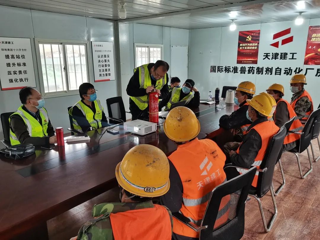 本次警示日分兩組同時開展。一組深入天津市重點工程國際標準獸藥制劑自動化廠房項目進行安全和消防安全宣貫,同時進行專項檢查,另一組對外埠云縵世家項目、寧夏調(diào)味料項目進行視頻檢查。