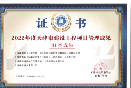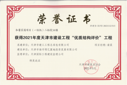 項(xiàng)目在施工過程中先后獲得2021年度天津市建設(shè)工程“海河杯”優(yōu)質(zhì)結(jié)構(gòu)認(rèn)定、2021年建設(shè)工程項(xiàng)目施工工地安全生產(chǎn)標(biāo)準(zhǔn)化學(xué)習(xí)交流項(xiàng)目(全國AAA示范工程)、2022年度“天津市市級文明示范工地”、2022年度天津市建設(shè)工程項(xiàng)目管理成果Ⅲ類成果等多項(xiàng)榮譽(yù)。